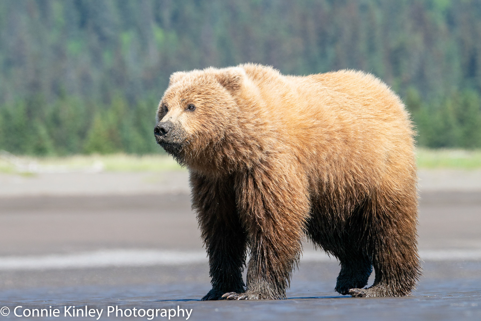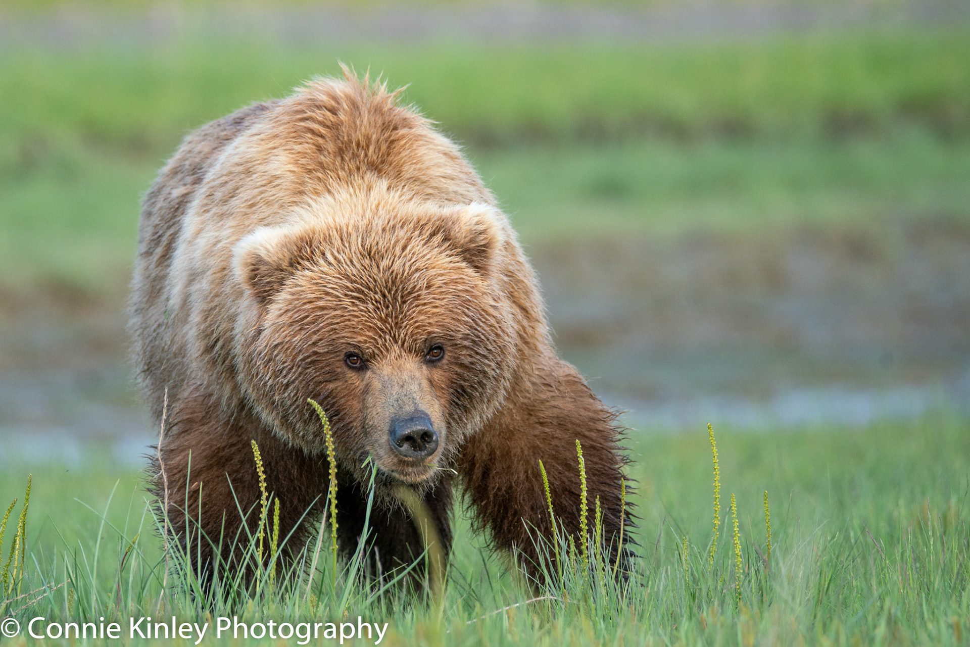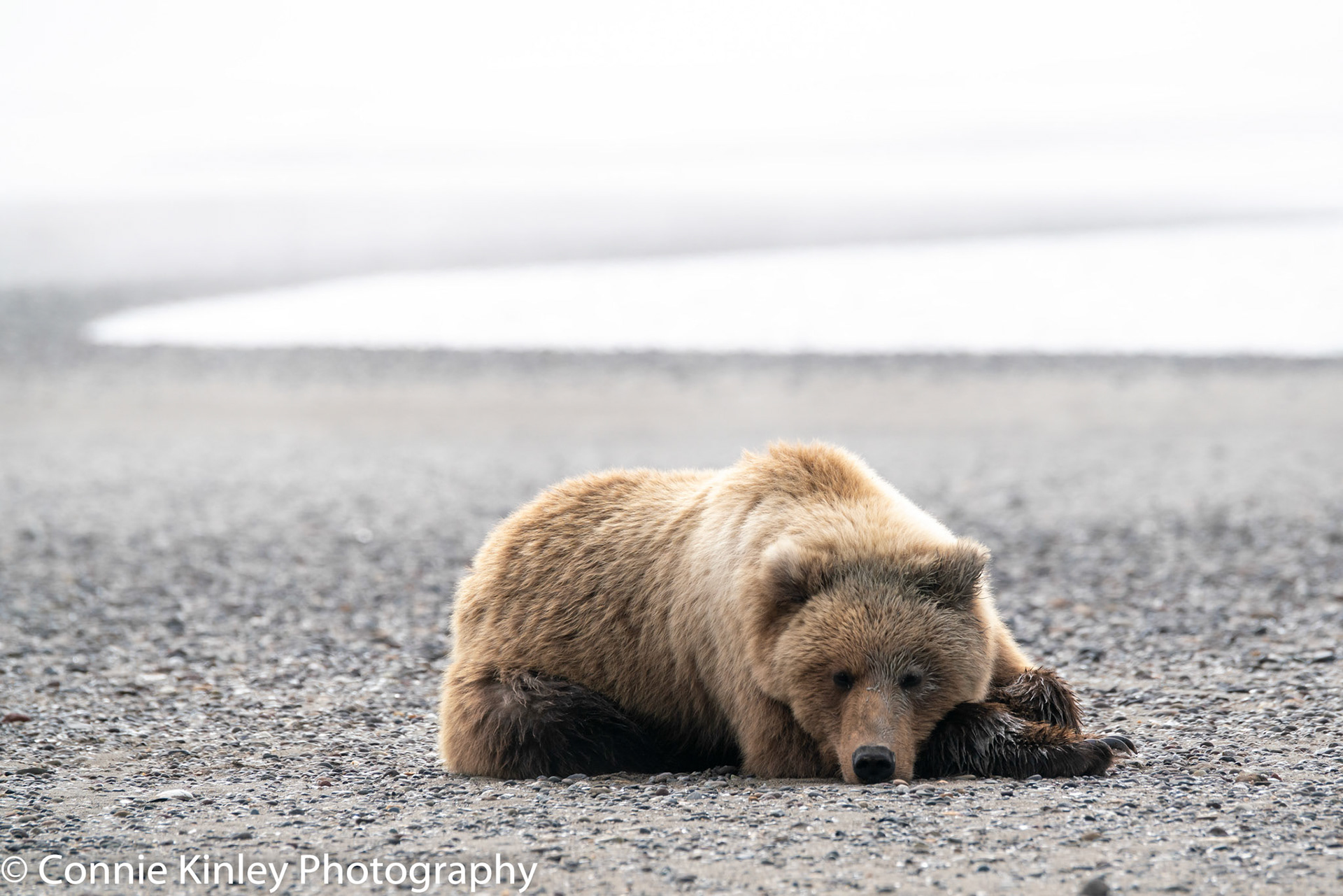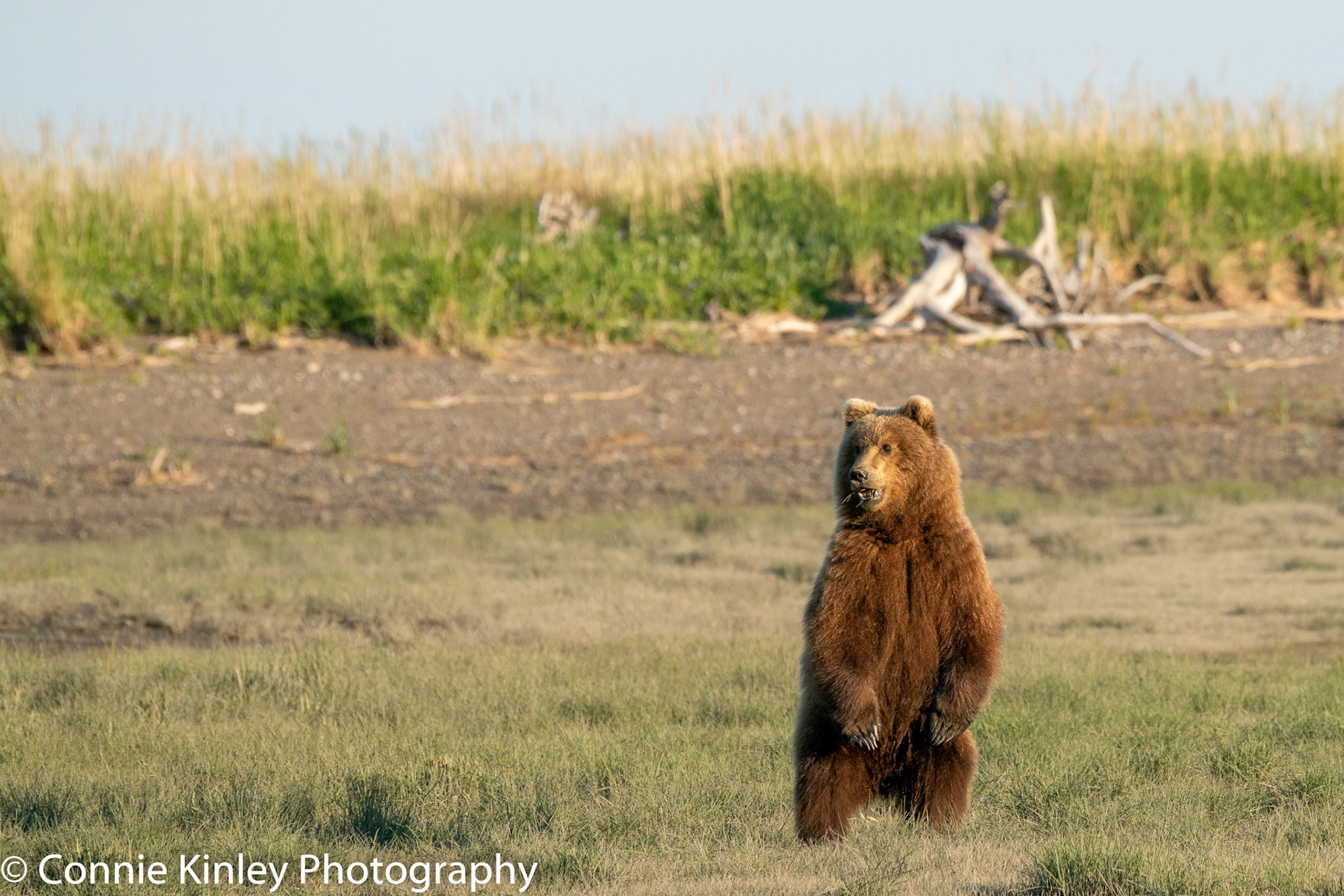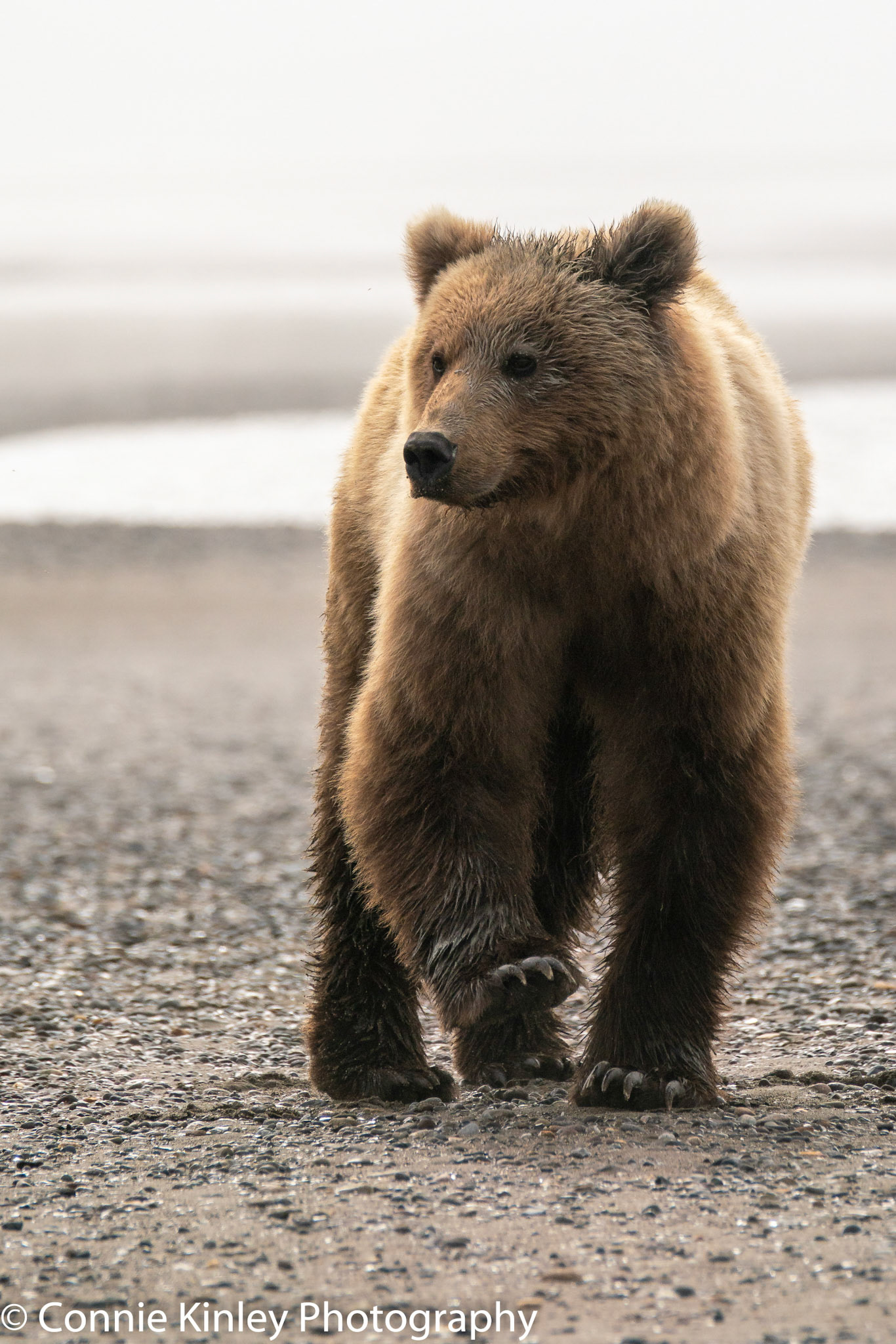Alaskan grizzlies emerge in spring to eat sedge grasses and search for clams on the beach at this remote area. Photographers are faced with mosquitoes, rain, cold, fog and dust, but also bears that are incredibly comfortable around humans.