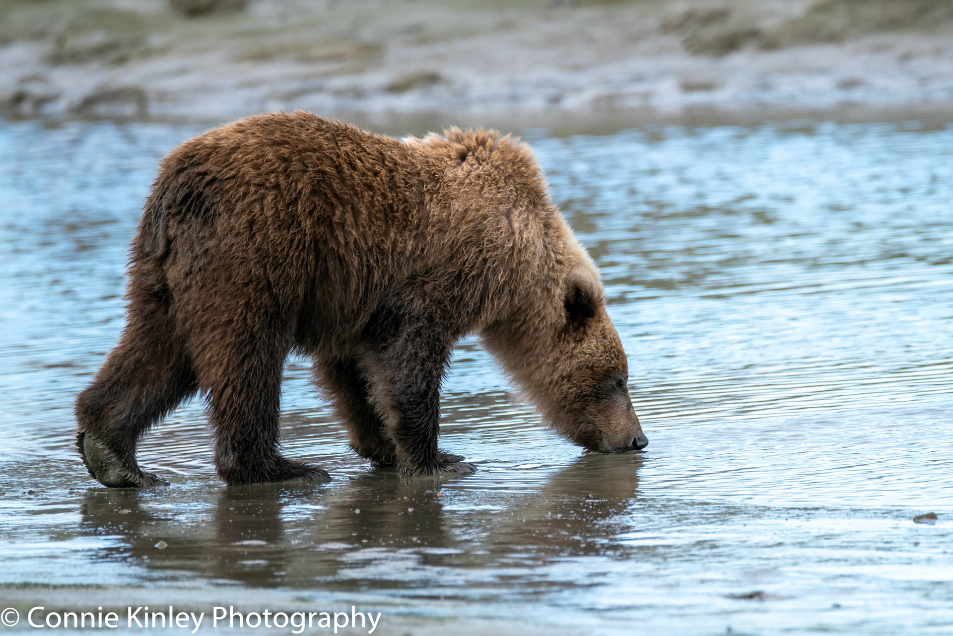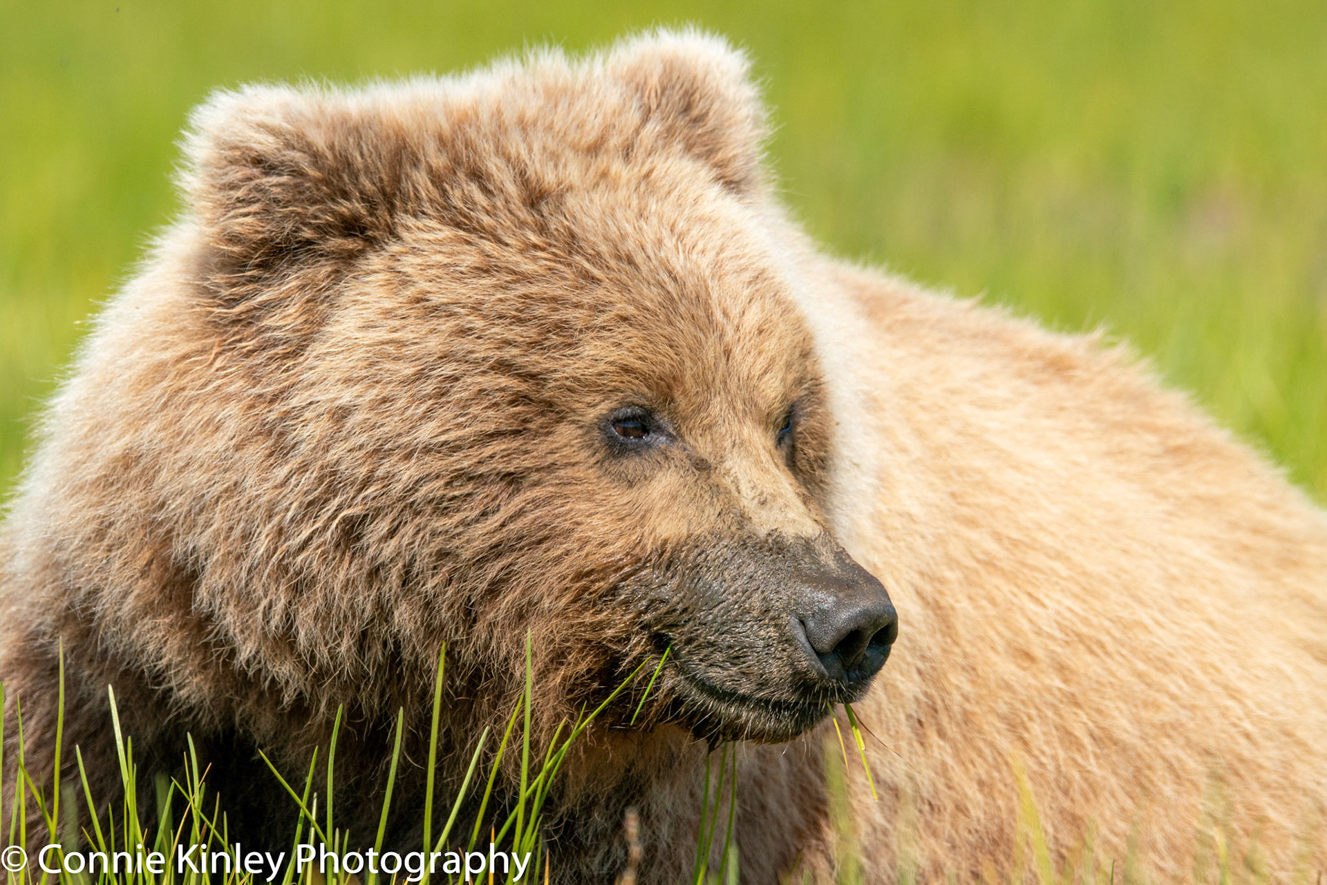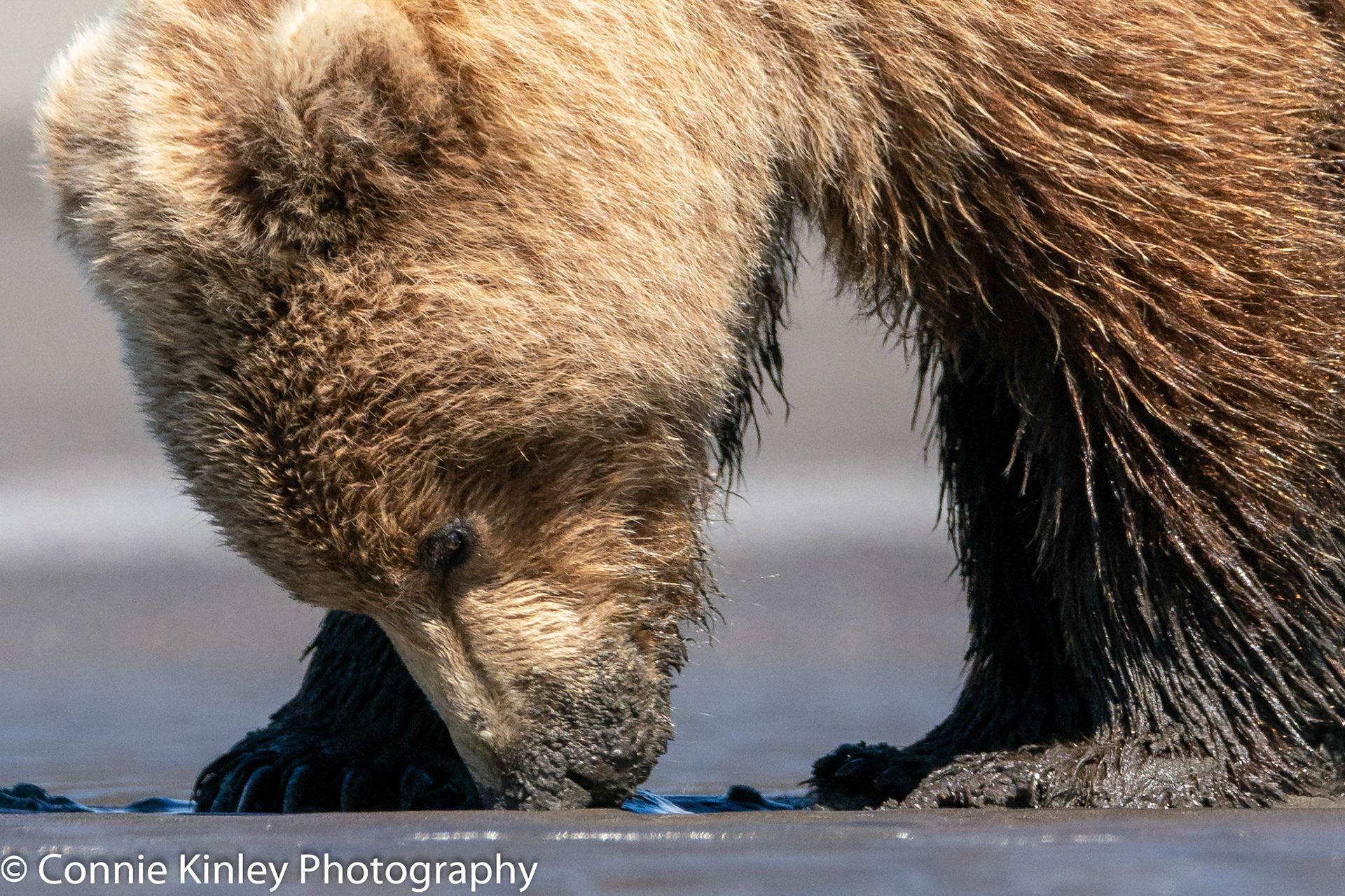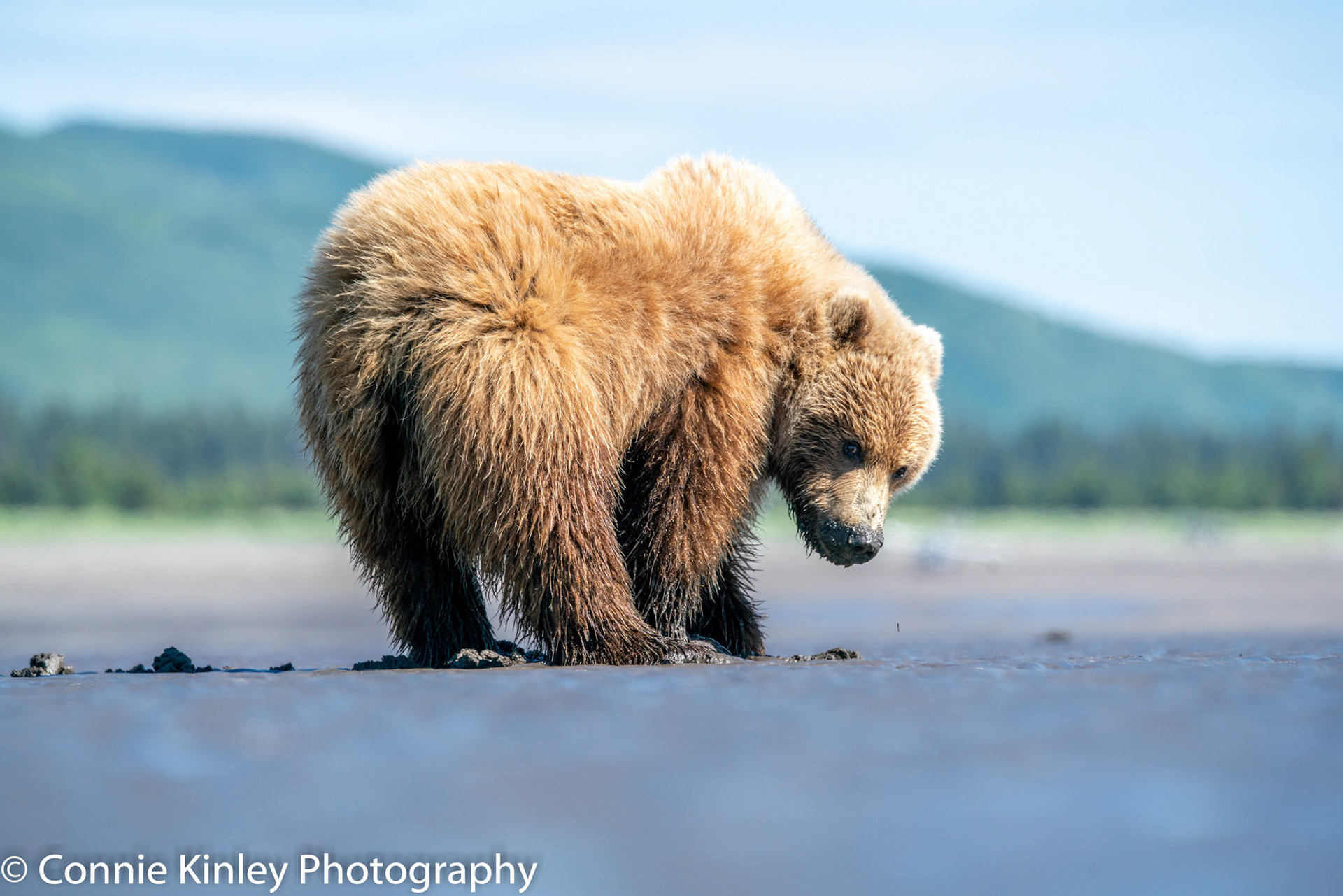 Alaskan grizzlies emerge in spring to eat sedge grasses and search for clams on the beach at this remote area. Photographers are faced with mosquitoes, rain, cold, fog and dust, but also bears that are incredibly comfortable around humans.