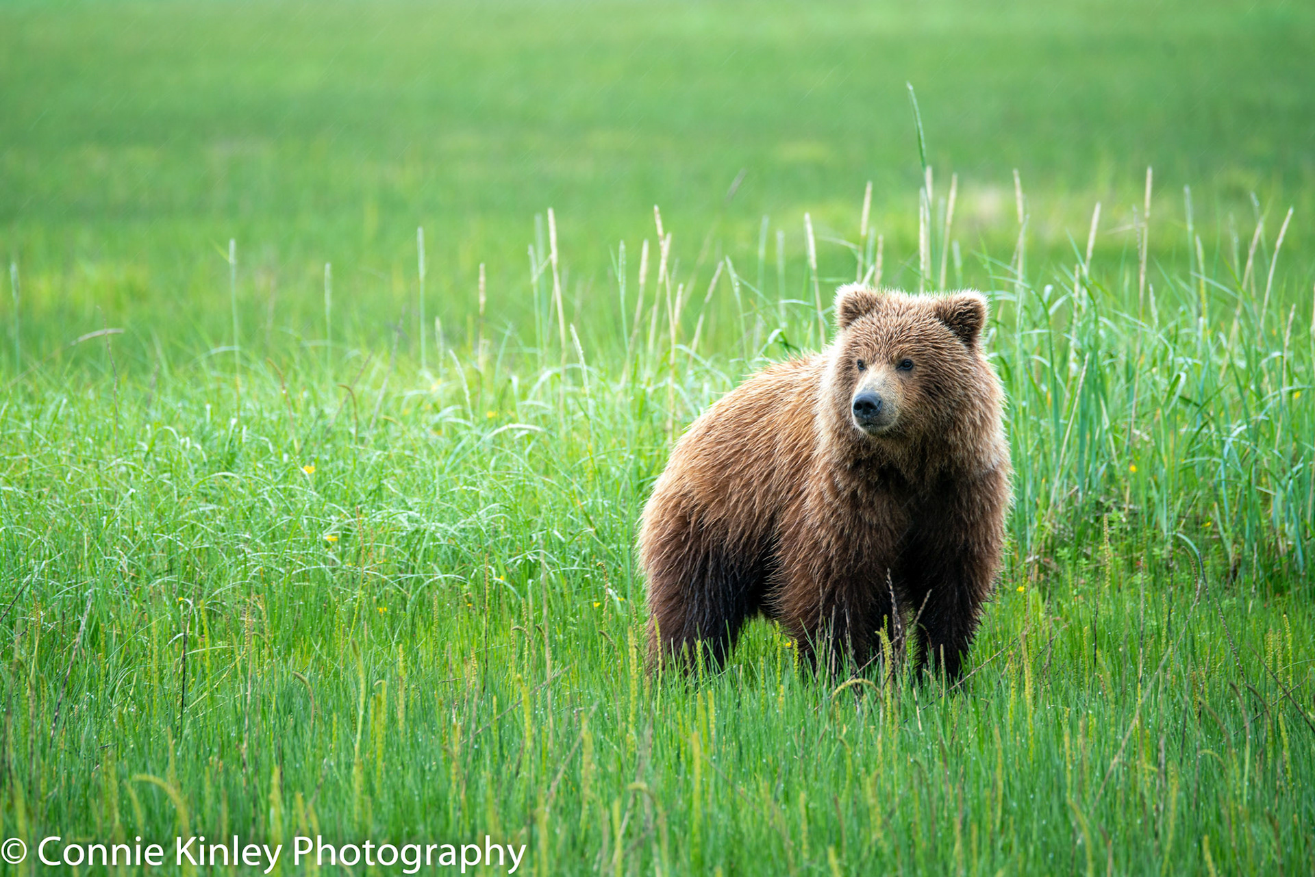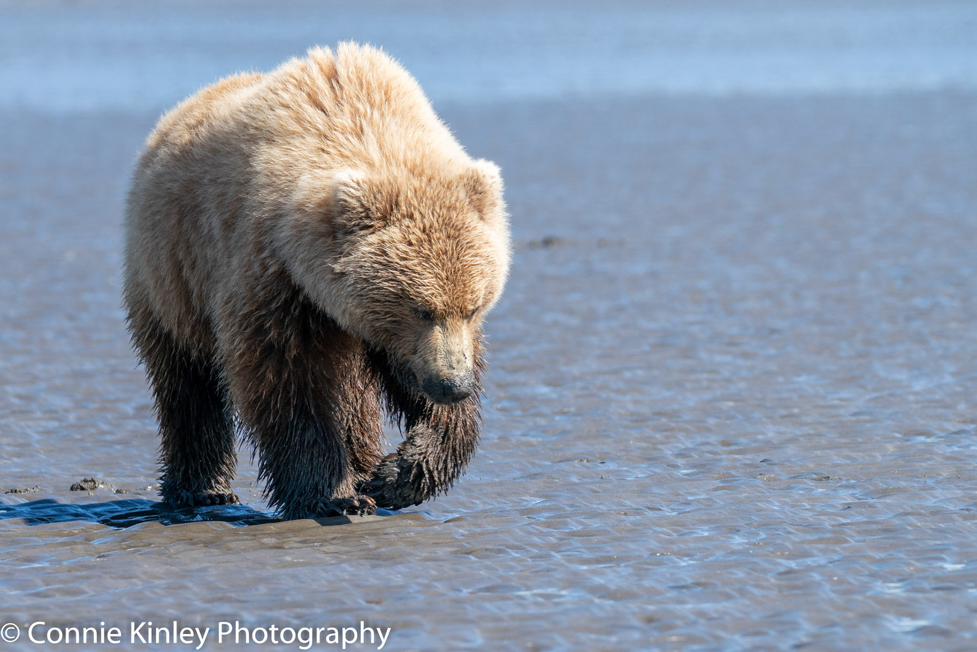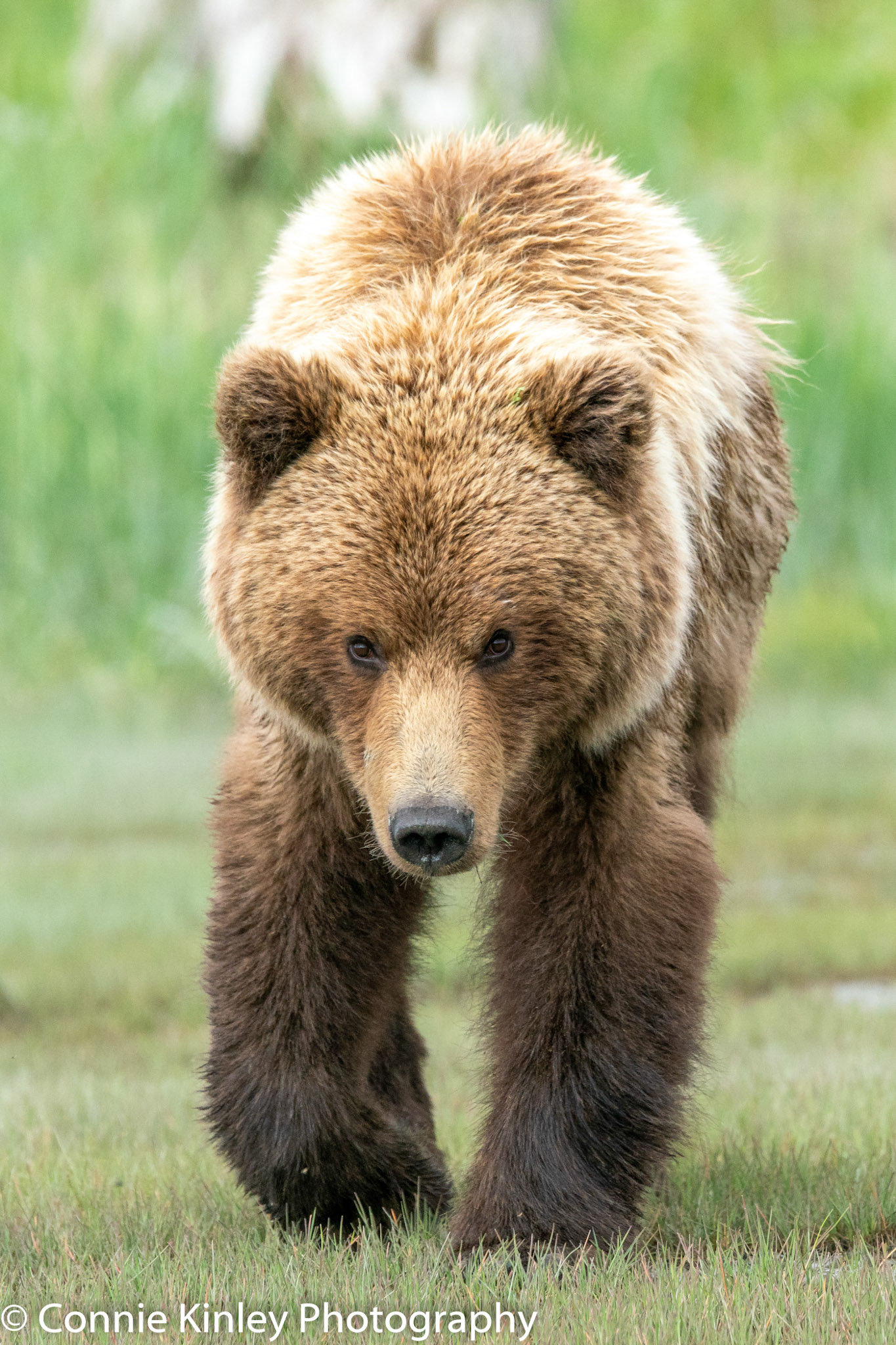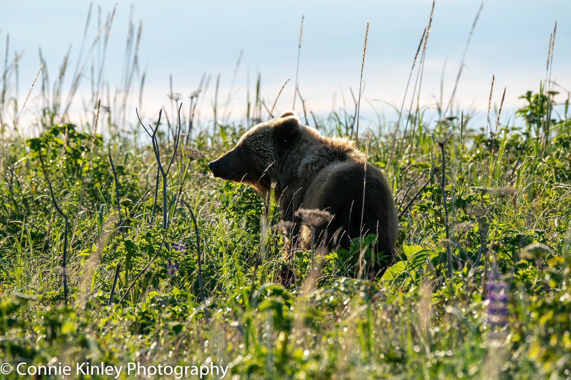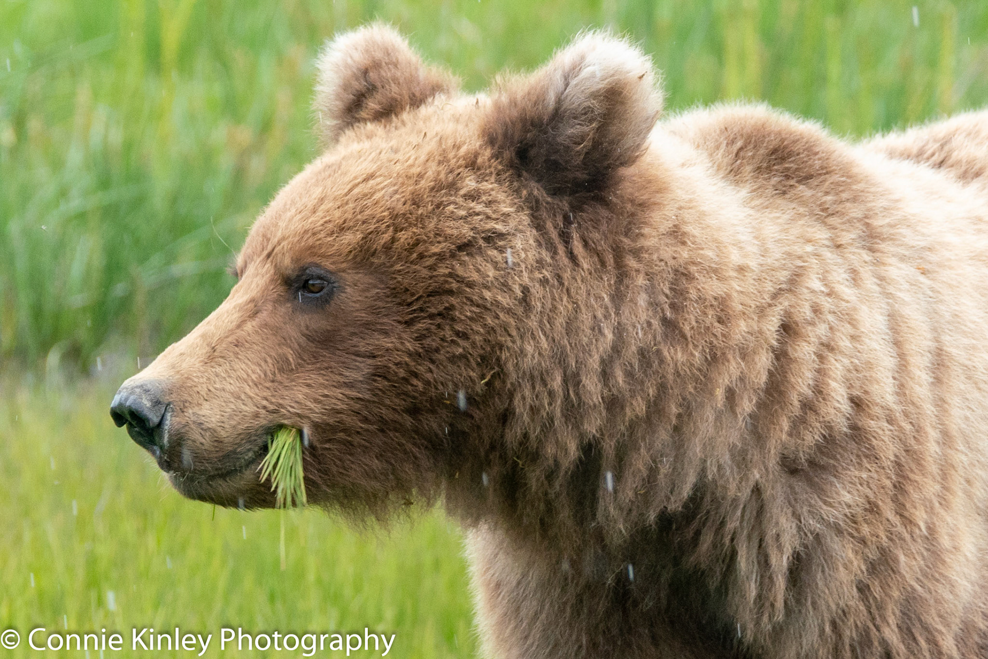 Alaskan grizzlies emerge in spring to eat sedge grasses and search for clams on the beach at this remote area. Photographers are faced with mosquitoes, rain, cold, fog and dust, but also bears that are incredibly comfortable around humans.