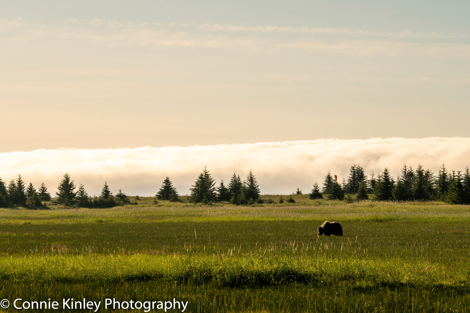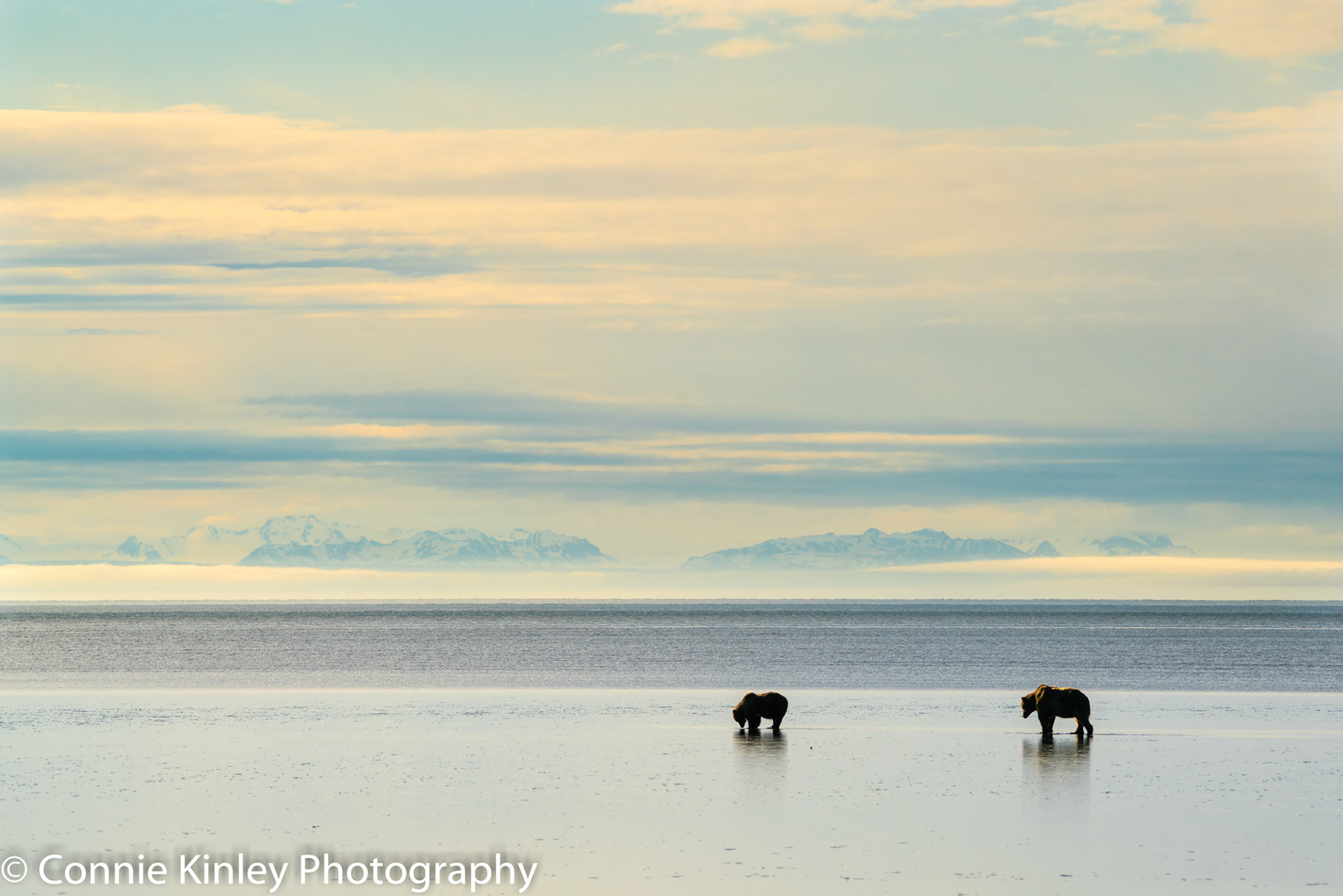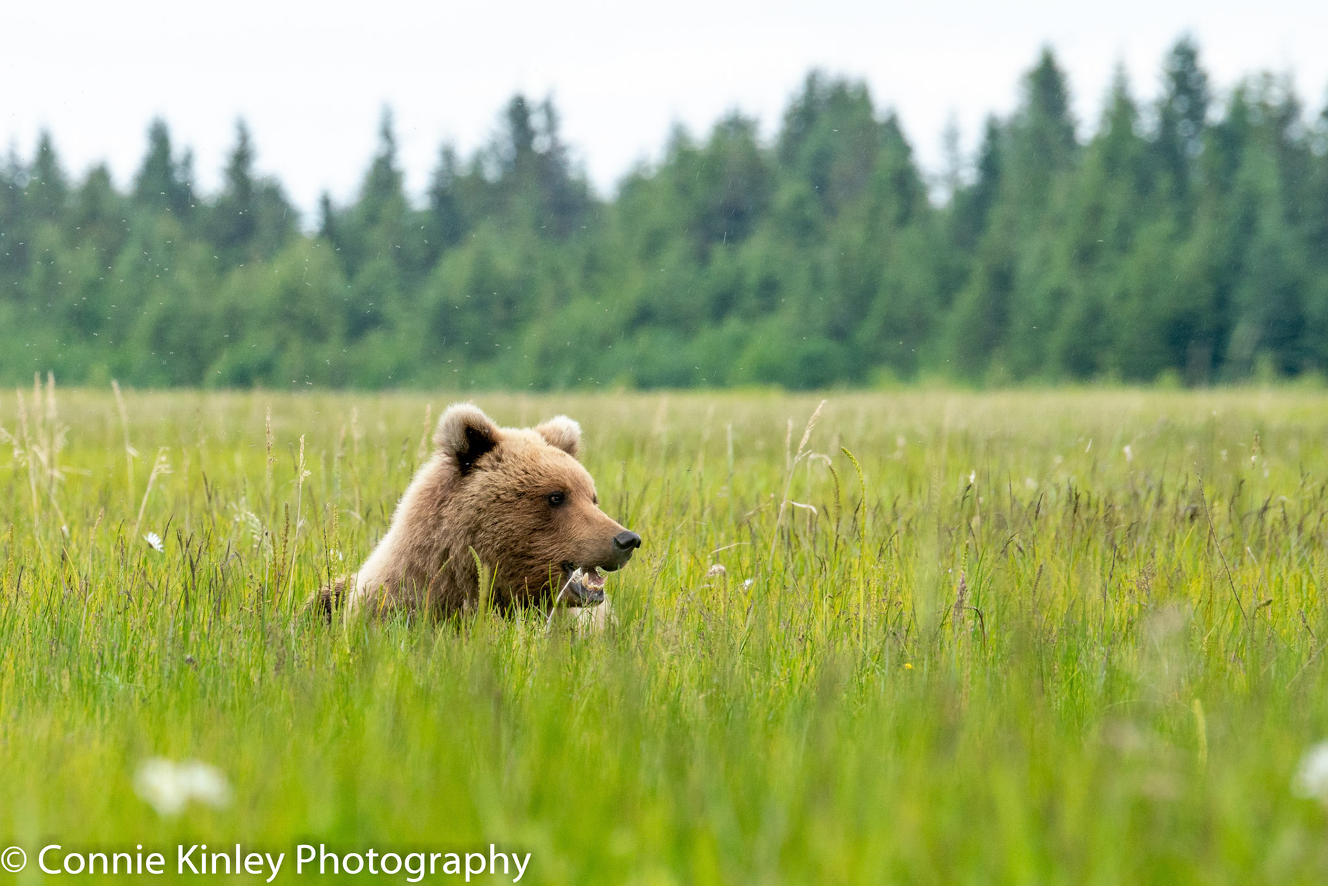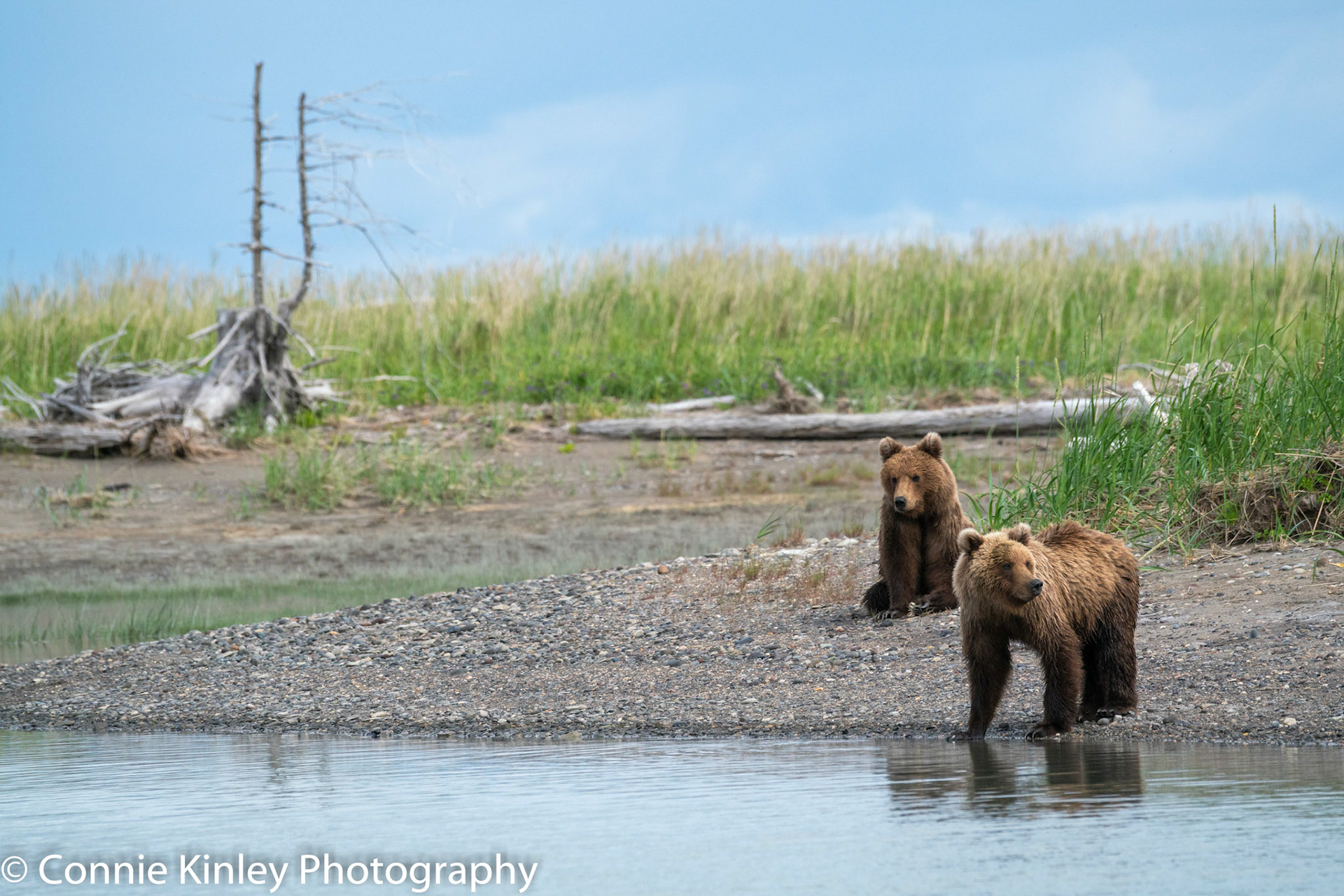 Alaskan grizzlies emerge in spring to eat sedge grasses and search for clams on the beach at this remote area. Photographers are faced with mosquitoes, rain, cold, fog and dust, but also bears that are incredibly comfortable around humans.