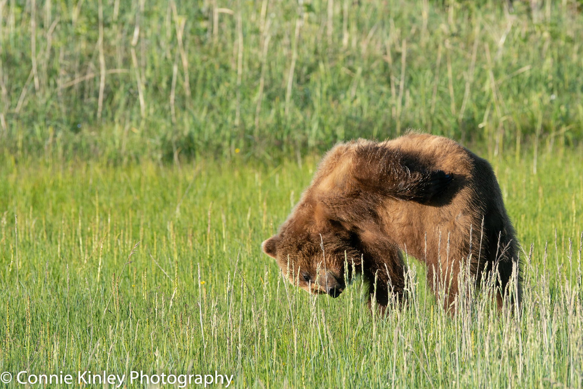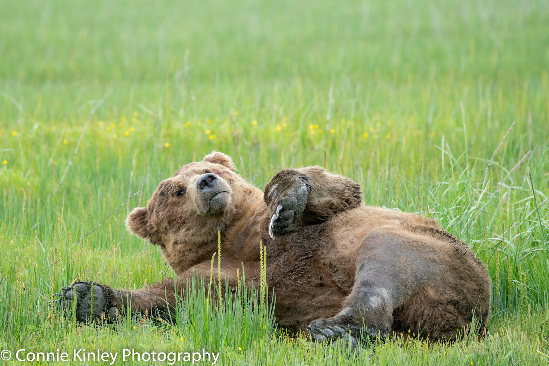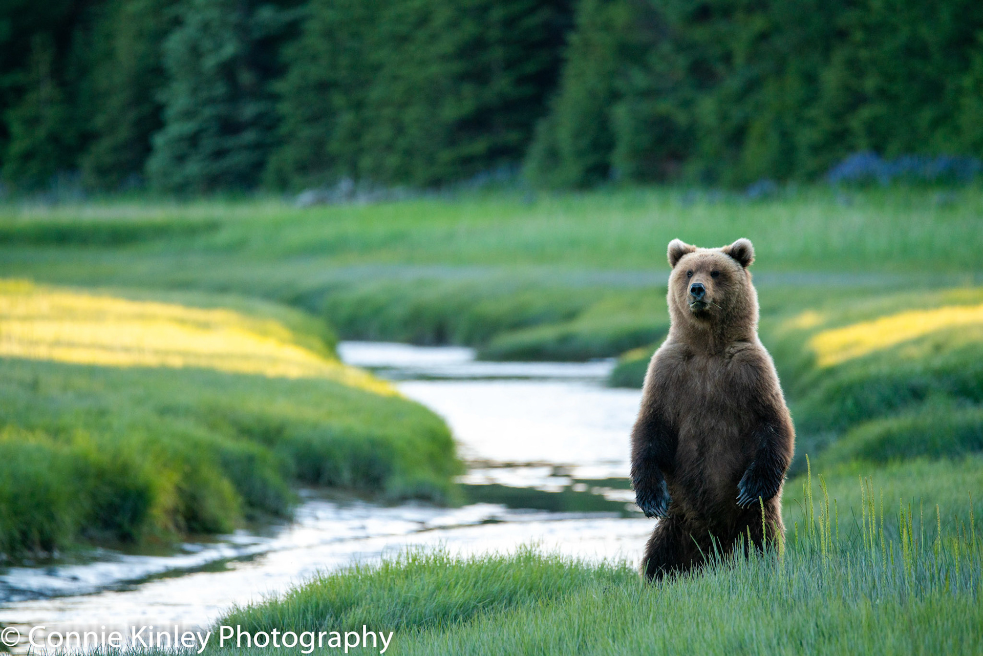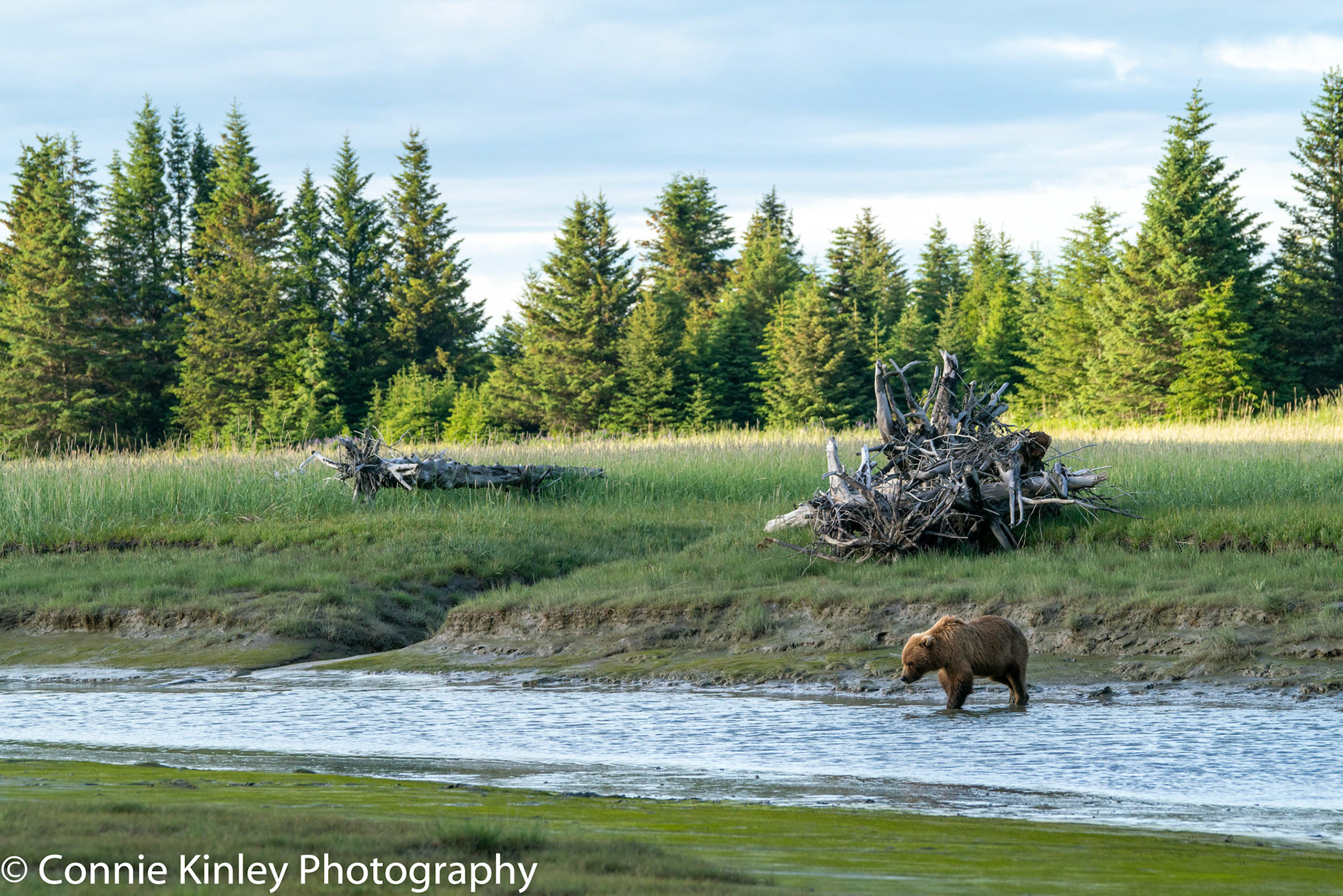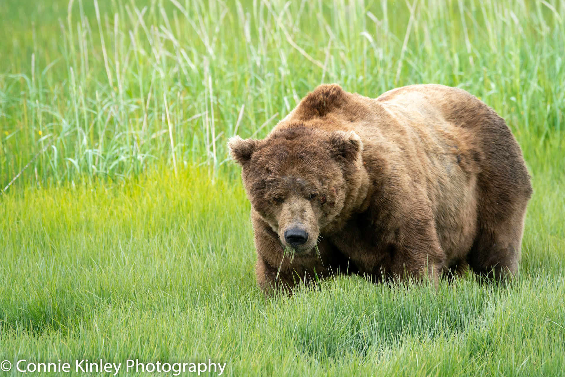 Alaskan grizzlies emerge in spring to eat sedge grasses and search for clams on the beach at this remote area. Photographers are faced with mosquitoes, rain, cold, fog and dust, but also bears that are incredibly comfortable around humans.